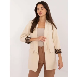 Wymiary marynarki w rozmiarze one size mierzone na płasko: szerokość pod pachami - 52 cm, długość rękawa - 56 cm, długość całkowita - 73 cm.
