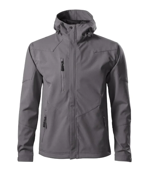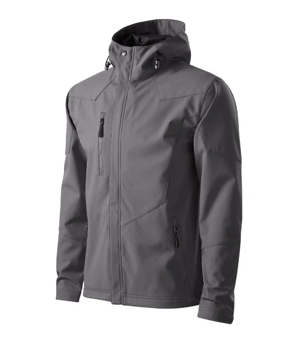 3vrstvý softshell s membránou efektní textura softshellu úprava Nanotex® zabraňující průniku vody celopropínací spirálový zip s klopou kapuce na stažení šňůrkou kapuce a lemy rukávů nastavitelné suchým zipem kapsy s reverzním spirálovým zipem náprsní kapsa tvarovaný a mírně prodloužený zadní díl kontrastní prvky Údržbové informace pro softshellový materiál