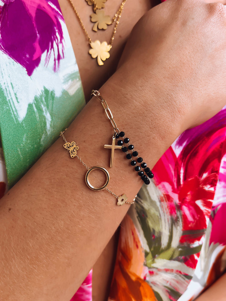 Náramek s motivem kříže má zapínání s nastavitelnou délkou a skvěle se hodí ke každému oblečení.