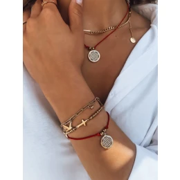 Náramek LANZAROTE je návrh, který bude vypadat skvěle jako doplněk k vašim šperkům i samostatně. Na šňůrce je ozdobný přívěsek ve zlaté barvě a zapínání je nastavitelné.