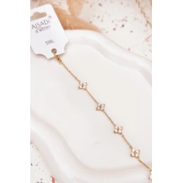Ženský náramek vyrobený ze chirurgické oceli je jemný a elegantní doplněk na každou příležitost. Nastavitelný zapínací mechanismus umožňuje ideálně přizpůsobit náramek zápěstí, což zajišťuje pohodlí při nošení. Jemné přívěsky ve tvaru květinek, zdobené cyrkoniemi, dodávají šperku lesk a ženský půvab. Stylový, odolný a nadčasový — skvěle doplní jak každodenní, tak i elegantní stylizace.