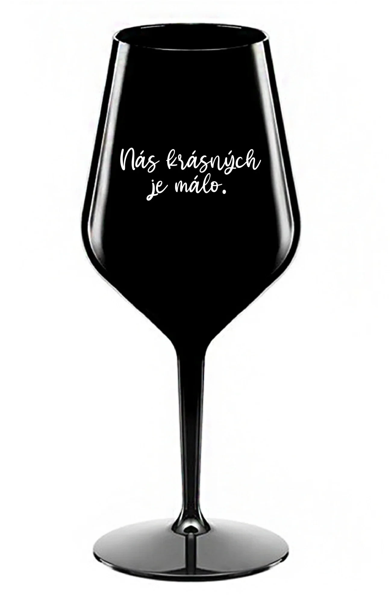 NÁS KRÁSNÝCH JE MÁLO. - černá nerozbitná sklenice na víno 470 ml