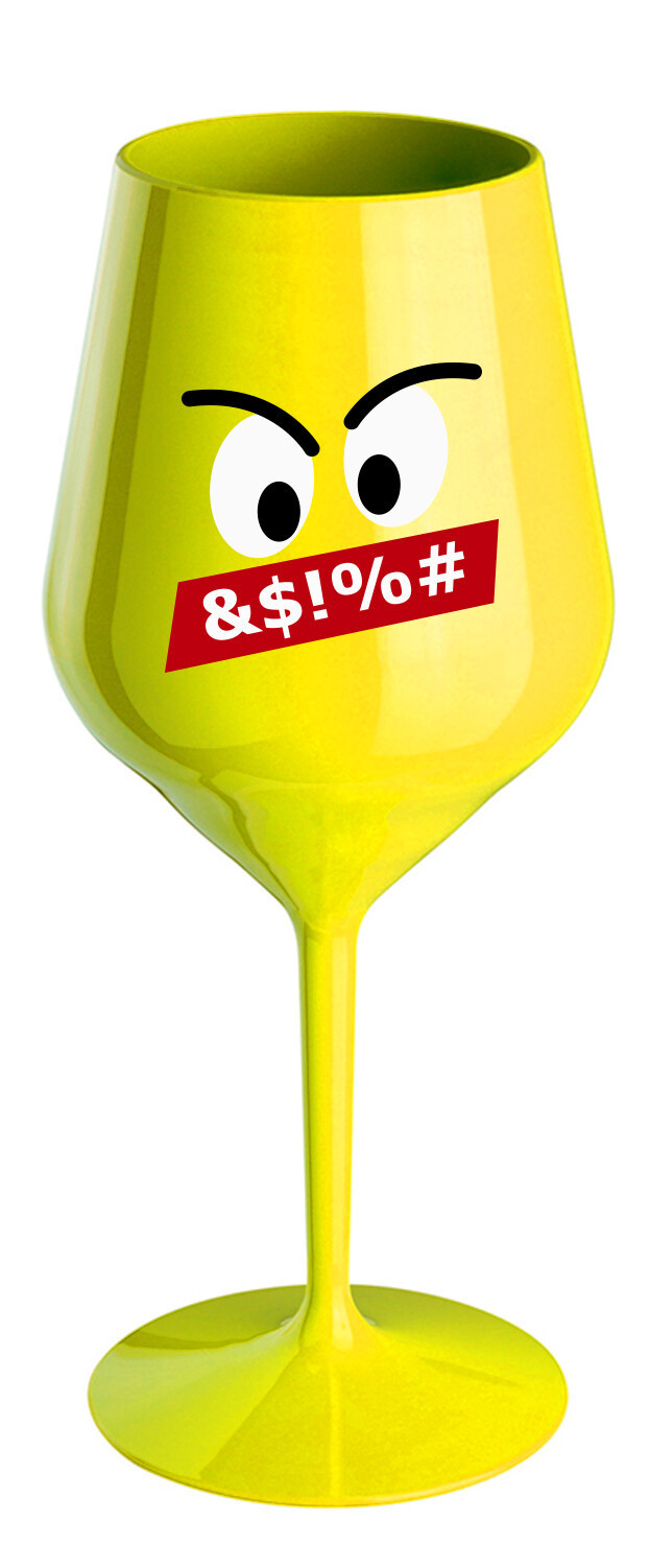 Nerozbitná žlutá sklenice na víno s potiskem emoji – když chceš styl i zábavu bez střepů