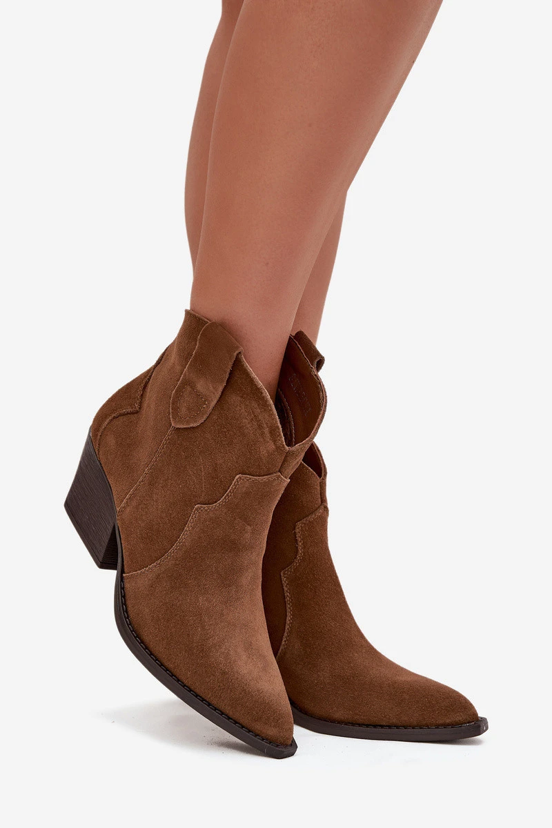 Dámské boty vyrobené z přírodního semiše jsou stylovou obuví v kovbojském stylu, která dodá každému outfitu charakter. Model s nasouváním zajišťuje pohodlí při obouvání a stabilní, zkrácené podpatky opticky zeštíhlují postavu a dodávají výjimečný vzhled. Špičaté nosy zdůrazňují ženský styl a odkazují na klasické kovbojky, takže boty se skvěle hodí jak k džínám, tak k lehkým šatům. Vnitřek vyhřátý obuvníkem zajišťuje tepelný komfort v chladnější dny, což činí model nejen nápadný, ale i praktický. Nabídka pro ženy, které ocení módní detaily a pohodlí každý den – boty se skvěle hodí do podzimně-zimních outfitů a dodávají jim originální westernový charakter. Při výběru velikosti se řiďte tabulkou velikostí.