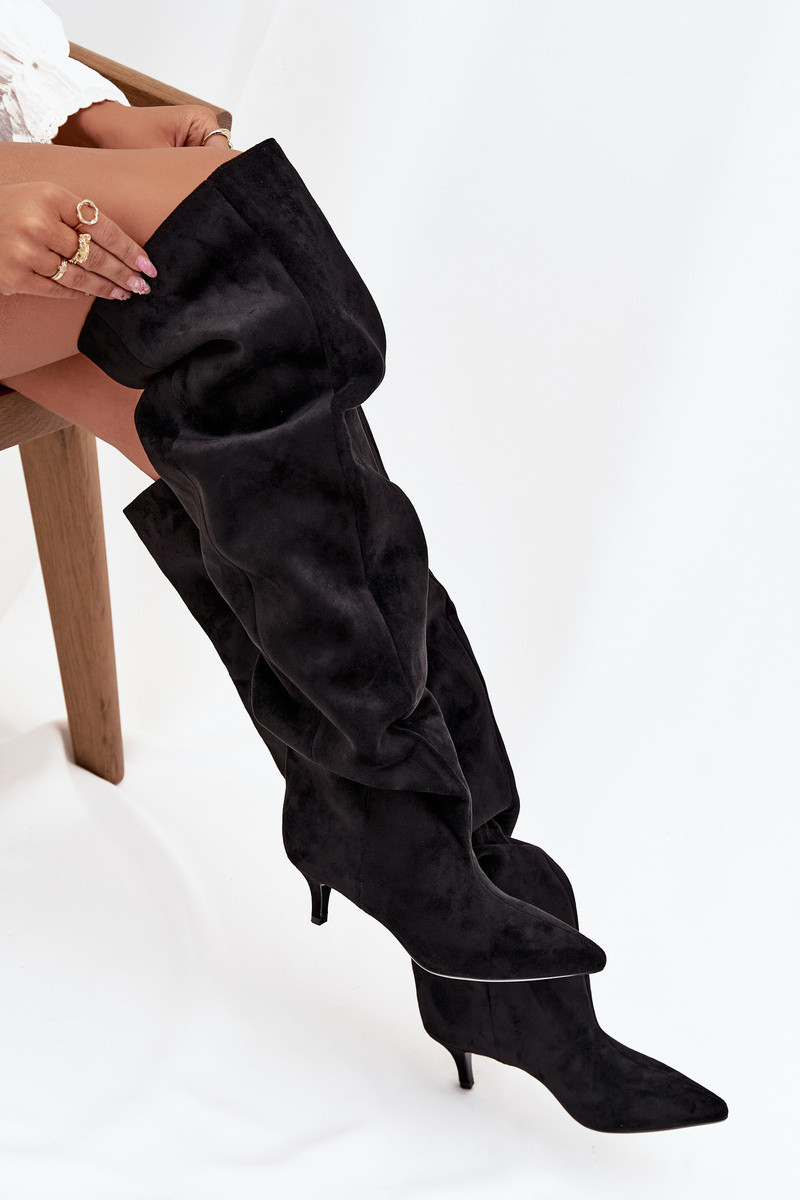 Nazouvací dámské kozačky na jehlovém podpatku černé Ysolienne