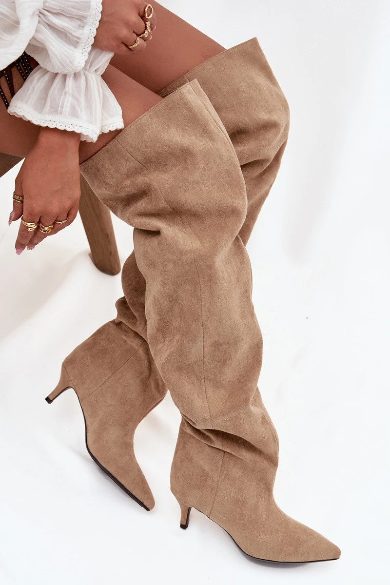 Nazouvací dámské kozačky na jehlovém podpatku Ysolienne – béžové