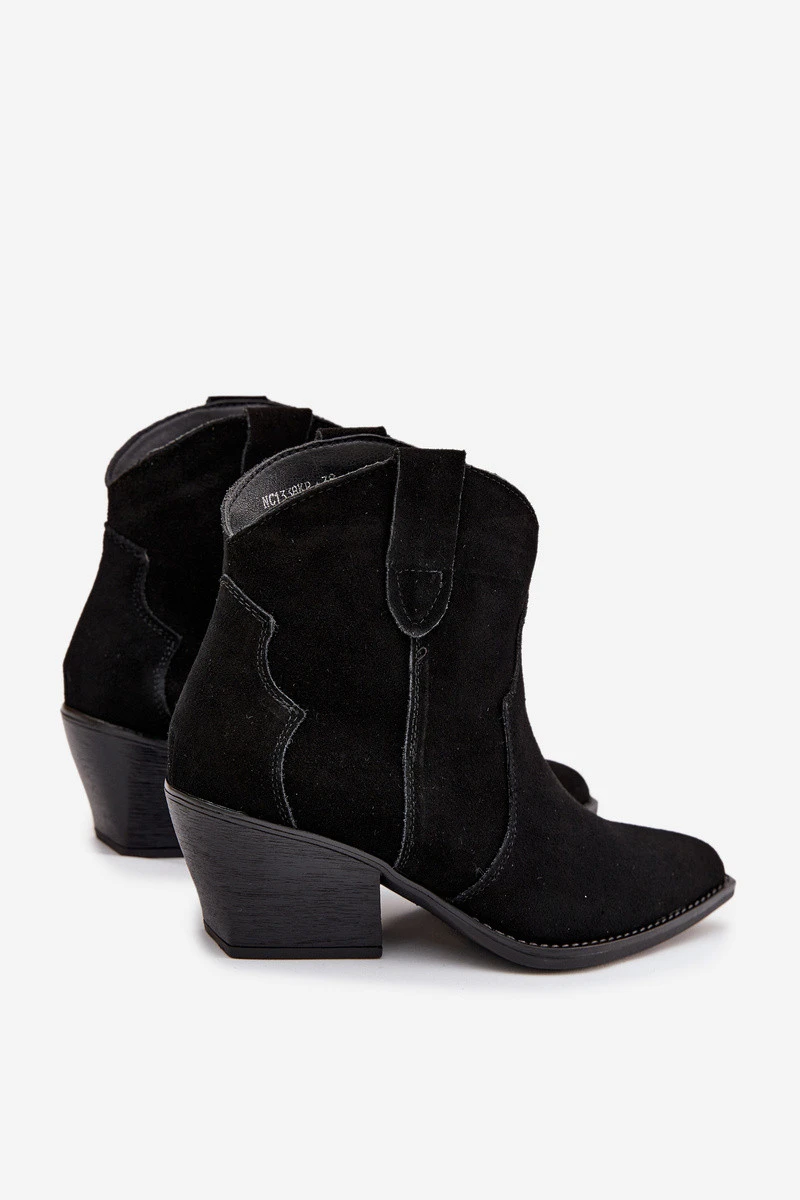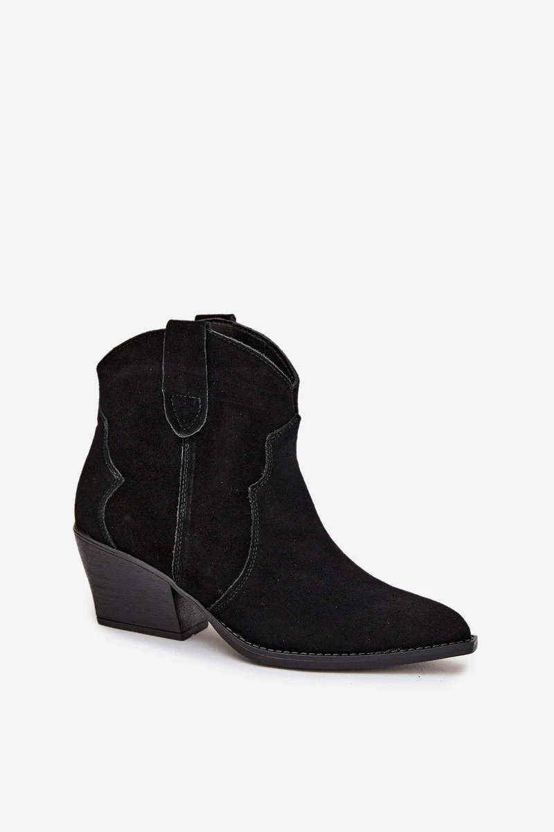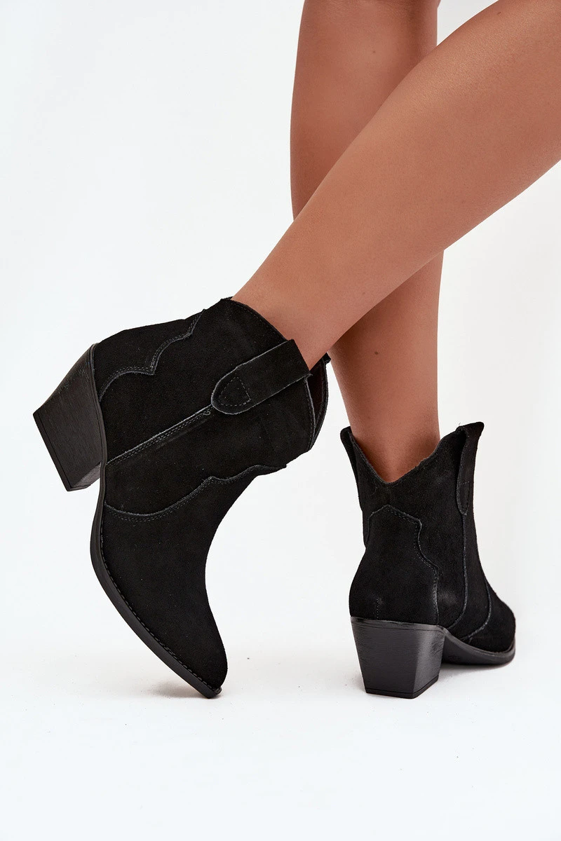Dámské kotníkové boty vyrobené z pravého semiše jsou stylovou obuví v kovbojském stylu, která dodá každému outfitu charakter. Zapínací model zajišťuje pohodlí při obouvání, a stabilní, zúžený podpatek opticky zeštíhluje siluetu a dodává výjimečný vzhled. Špičaté nosy zdůrazňují ženský styl a odkazují na klasické kovbojky, takže boty se skvěle hodí jak k džínám, tak k lehkým šatům. Vnitřek vyhřátý obuvníkem zaručuje tepelný komfort v chladnějších dnech, což činí tento model nejen efektním, ale i praktickým. Nabídka pro ženy, které ocení módní detaily a pohodlí každý den – boty jsou ideální do podzimních a zimních stylů, dodávají jim originální západní charakter. Při výběru velikosti se řiďte tabulkou velikostí.EAN čárové kódy zboží jsou: