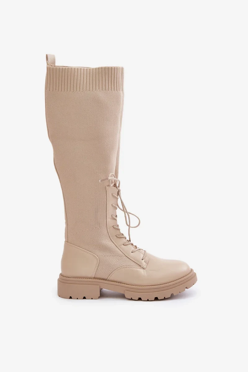 Nazouvací kozačky s ponožkovým svrškem béžové Iranel