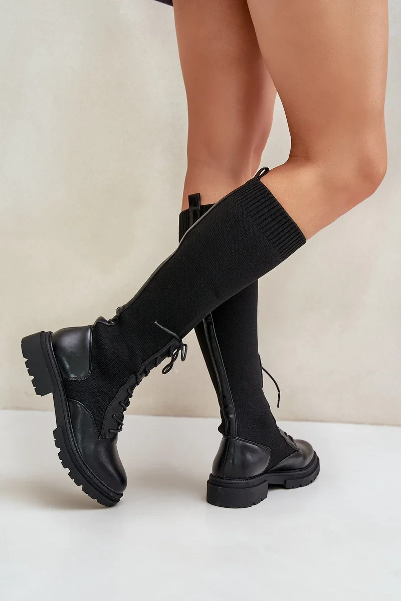 Nazouvací kozačky s ponožkovým svrškem černé Iranel