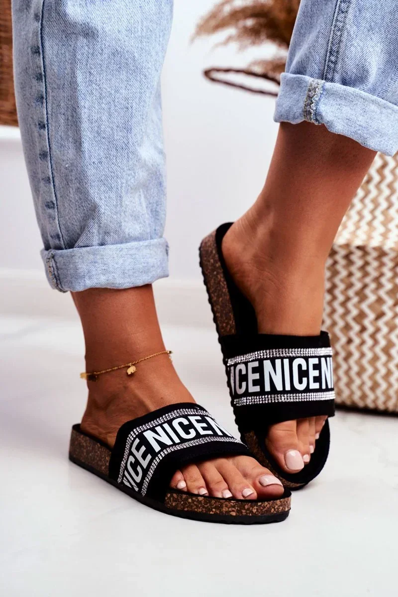 Nazouváky Na Korkové Podrážce Se Zirkony Černé Be Nice
