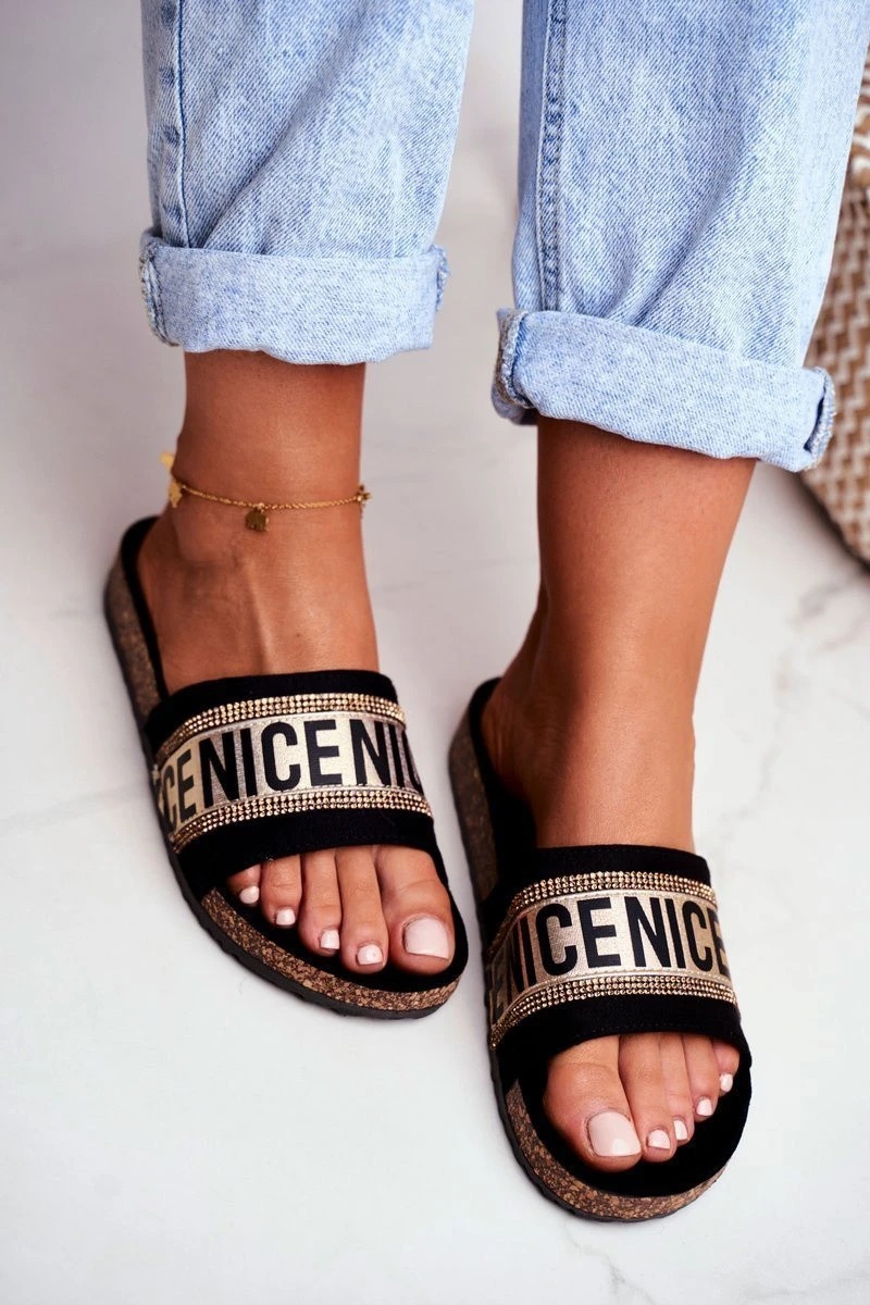 Nazouváky Na Korkové Podrážce Se Zirkony Černé-Zlaté Be Nice