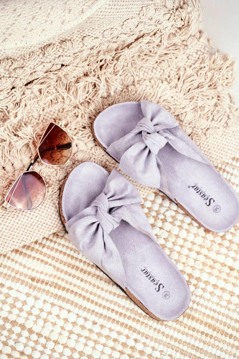 Krásné pantofle na korkové podrážce. Boty mají profilovanou stélku, která zaručuje maximální pohodlí. Svršek je vyroben z měkkého eko semiše, příjemného na dotek. Plastová podrážka. Krásná mašlička na přední straně. Žabky se budou skvěle hodit do každodenní práce nebo na nákupy, ale i na doma místo přezůvek. Ideální na léto! Pantofle jsou dostupné v mnoha krásných barvách! Při výběru velikosti použijte tabulku velikostí.