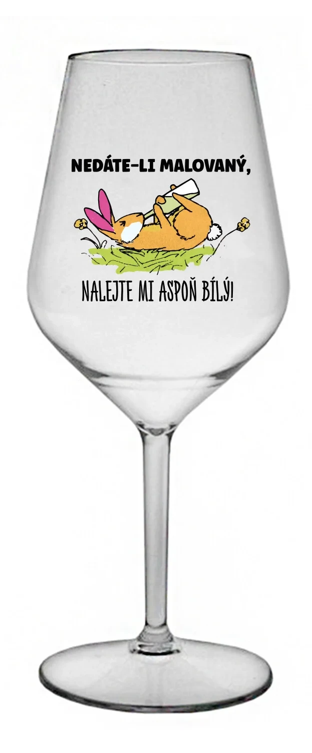 NEDÁTE-LI MALOVANÝ, NALEJTE MI ASPOŇ BÍLÝ! - čirá nerozbitná sklenice na víno 470 ml