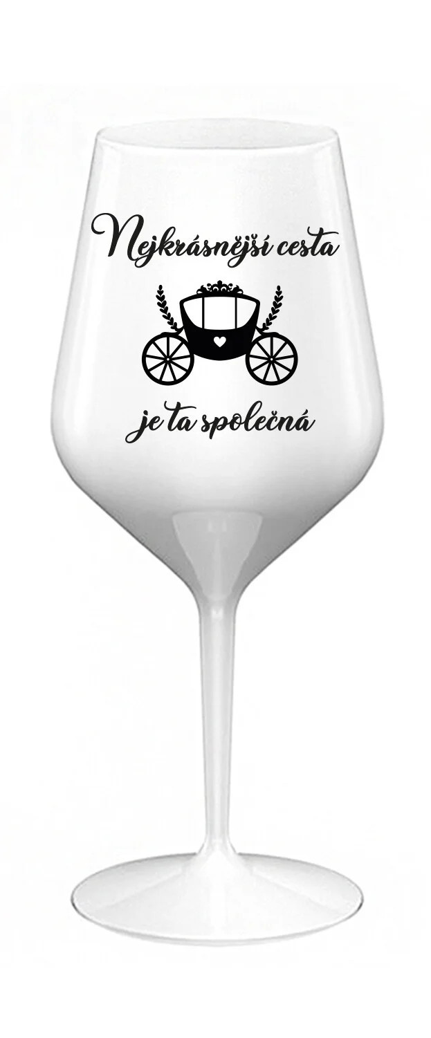 NEJKRÁSNĚJŠÍ CESTA JE TA SPOLEČNÁ - bílá nerozbitná sklenice na víno 470 ml