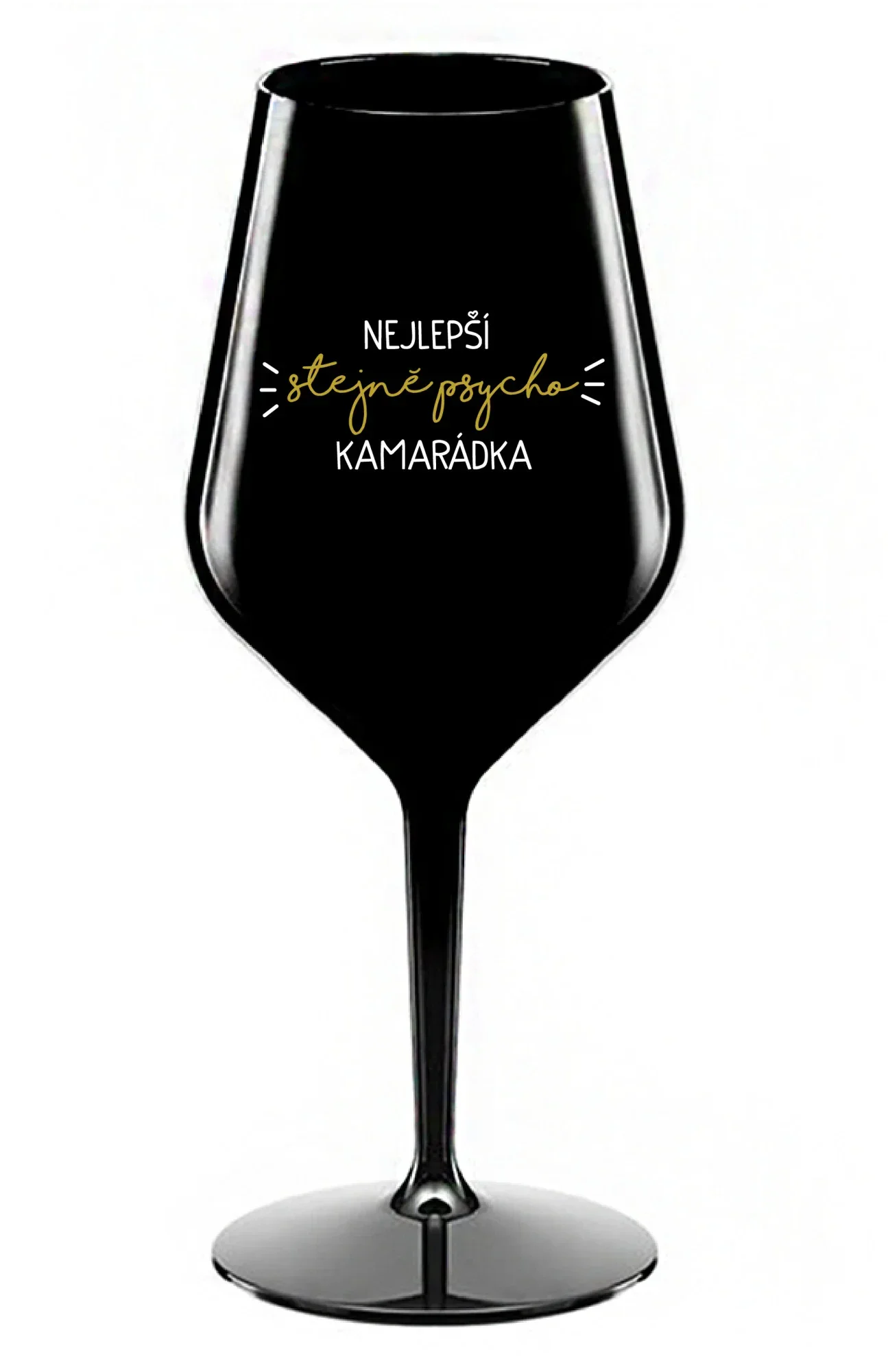 NEJLEPŠÍ STEJNĚ PSYCHO KAMARÁDKA - černá nerozbitná sklenice na víno 470 ml