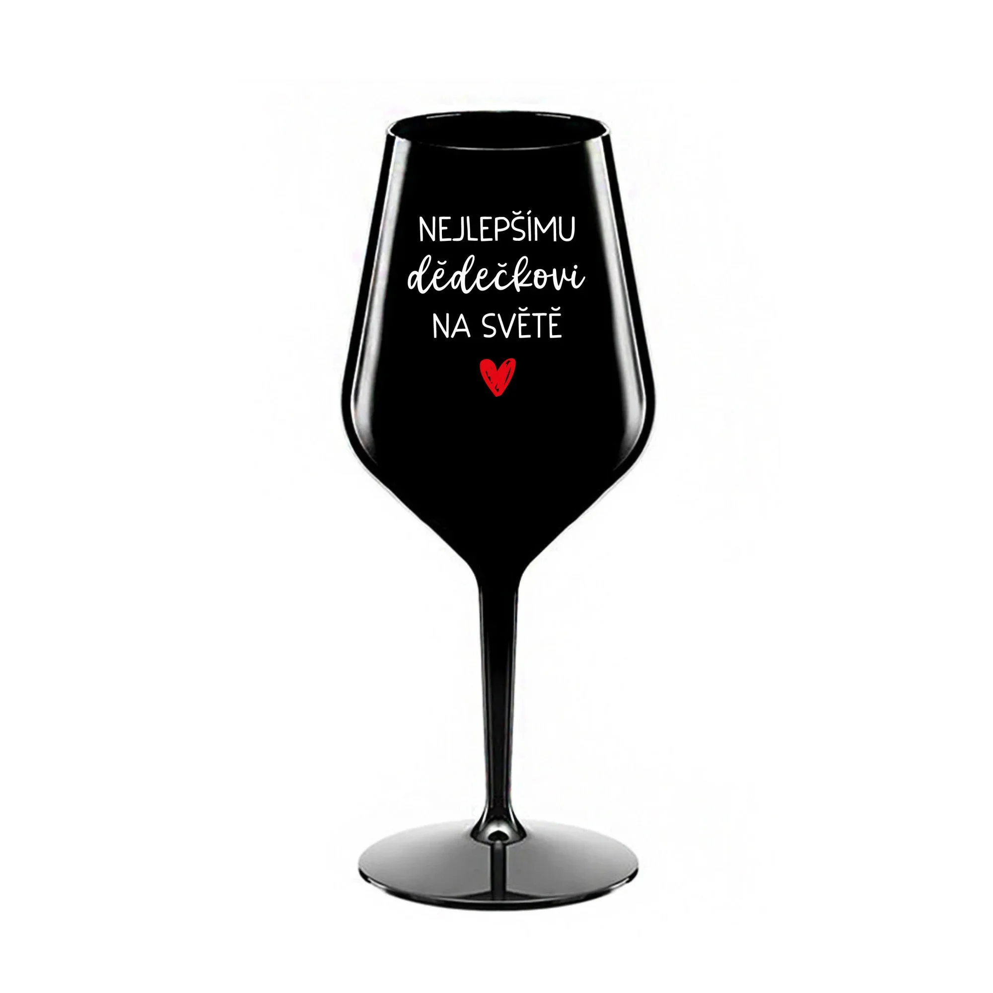 NEJLEPŠÍMU DĚDĚČKOVI NA SVĚTĚ - černá nerozbitná sklenice na víno 470 ml
