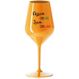NEJSEM ONLINE JSEM ONWINE - oranžová nerozbitná sklenice na víno 470 ml