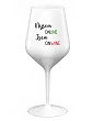 Nerozbitná růžová vinná sklenice s motivem NEJSEM ONLINE JSEM ONWINE je skvělá na zahradu, pláž, výlet, piknik a parádu udělá i při kempování. Jelikož je vyrobená z kvalitního polykarbonátu je de facto nerozbitná. Je to luxusní kousek, s nímž si víno můžete vychutnat prostě kdekoliv. Mají ergonomický tvar, který příjemně padne do ruky a protože je lehká, usnadňuje to její přenášení. Je snadno skladovatelná a lehce se čistí. Díky svému designu si s ní můžete vychutnat doopravdy kdekoliv bezproblémové pití výborného vína.