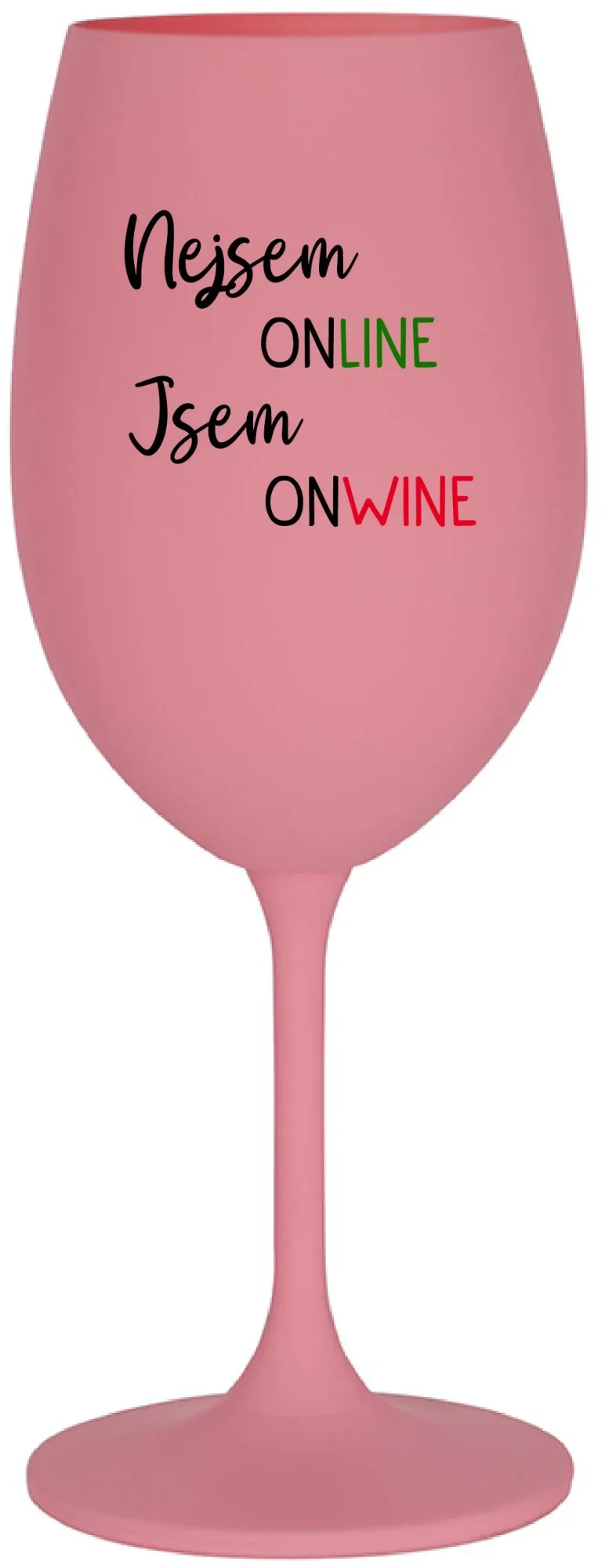 NEJSEM ONLINE JSEM ONWINE - růžová sklenice na víno 350 ml