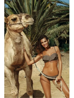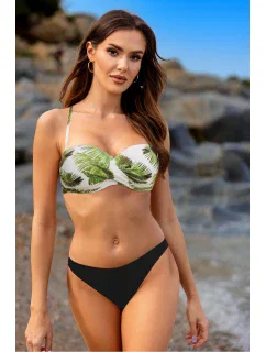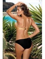 Stylové plavky s podprsenkou v krásné zlaté barvě. Prohloubený, svůdný výstřih, lehce lesklá tkanina. Spodní díl v tropickém vzoru. Nela M-610 jsou nápadné měkké glamour plavky, ve kterých budete vypadat úchvatně.