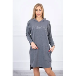 Představujeme vám módní šaty. Na šatech je nápis unlimited. Vrchní část šatů má svislé zipy. Šaty s delšími zády a kapucí. Šaty s kapsami s nášivkami. Ideální každodenní poloha. Šaty jsou vyrobeny z vysoce kvalitního materiálu. Velikost je univerzální a vyhovuje dámám, které nosí velikost S, M nebo L.