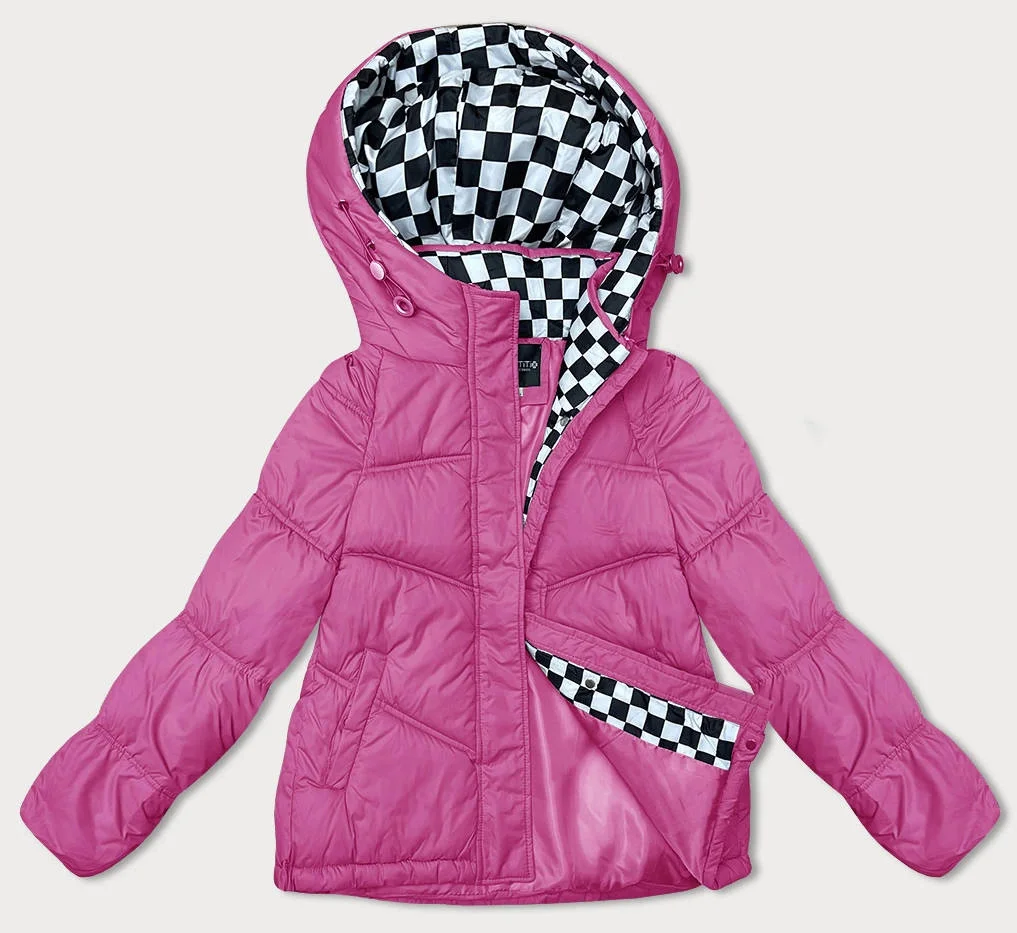 Neonově růžová volná dámská bunda s kapucí (8118)