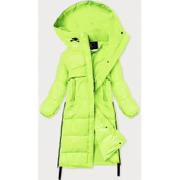 Neonově žlutá dlouhá zimní bunda z různých spojených materiálů (jin-210)
