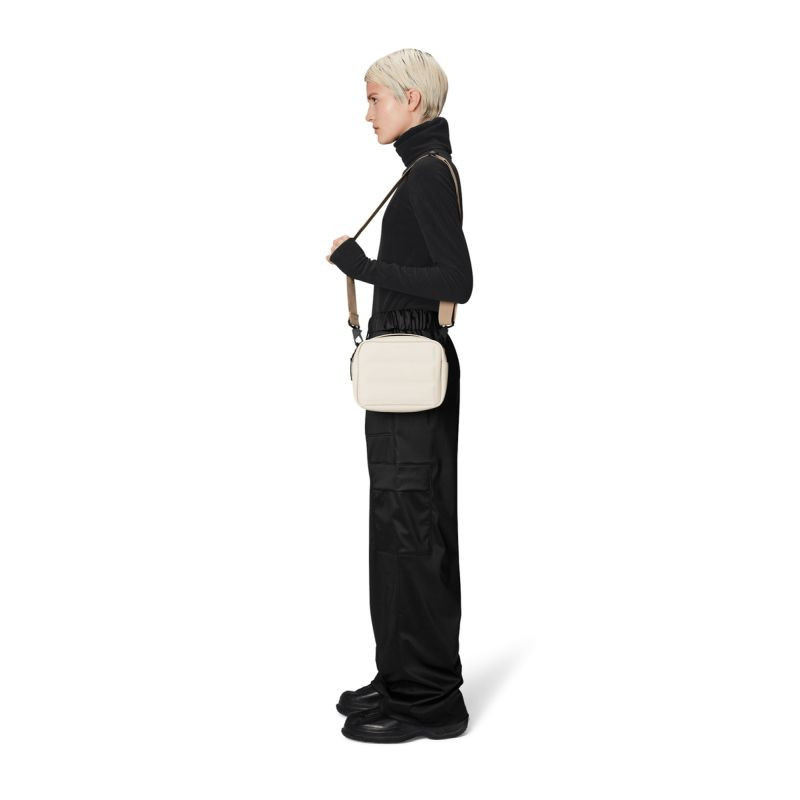 Torba Shield Box Bag to interpretacja kultowej torby Rains' Box Bag, z panelami z przodu i z tyłu, które dają iluzję puchówki. Projekt wykończony jest wytrzymałym górnym uchwytem i regulowanym paskiem, mocowanym za pomocą karabińczyków.
