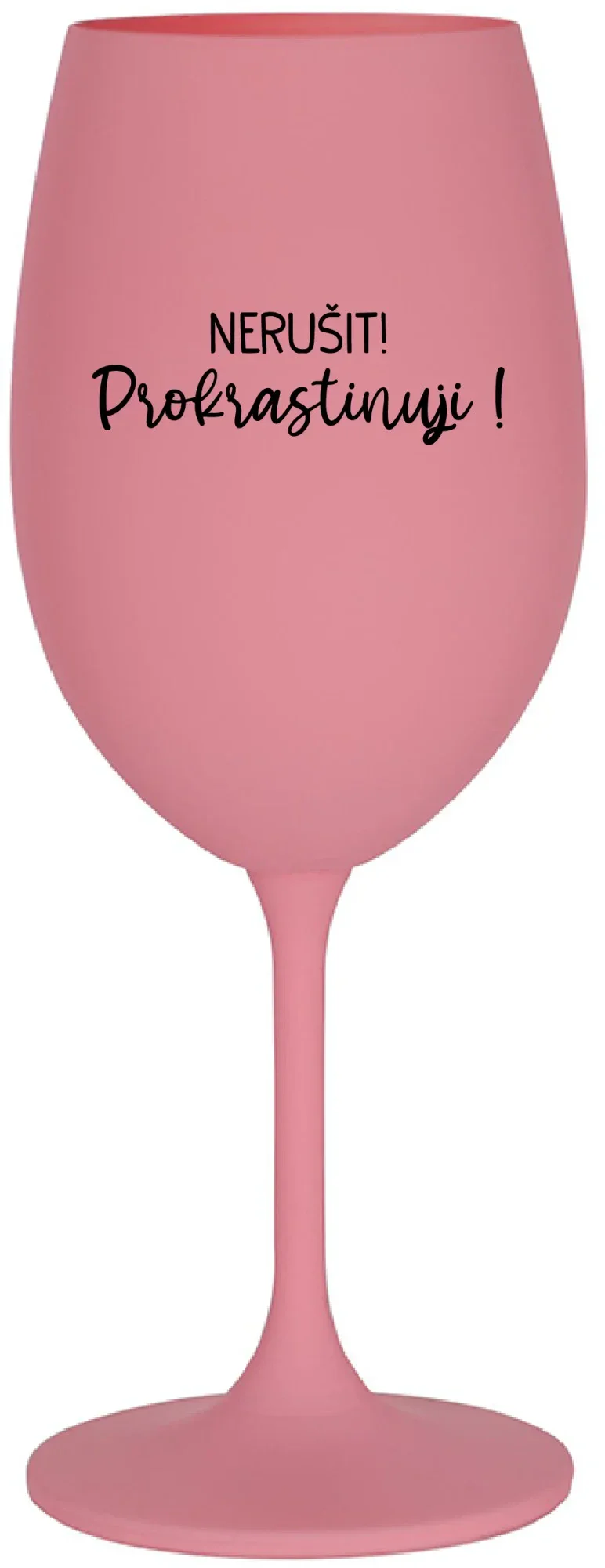 NERUŠIT! PROKRASTINUJI! - růžová sklenice na víno 350 ml