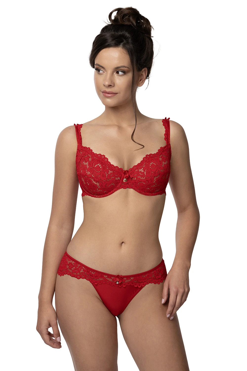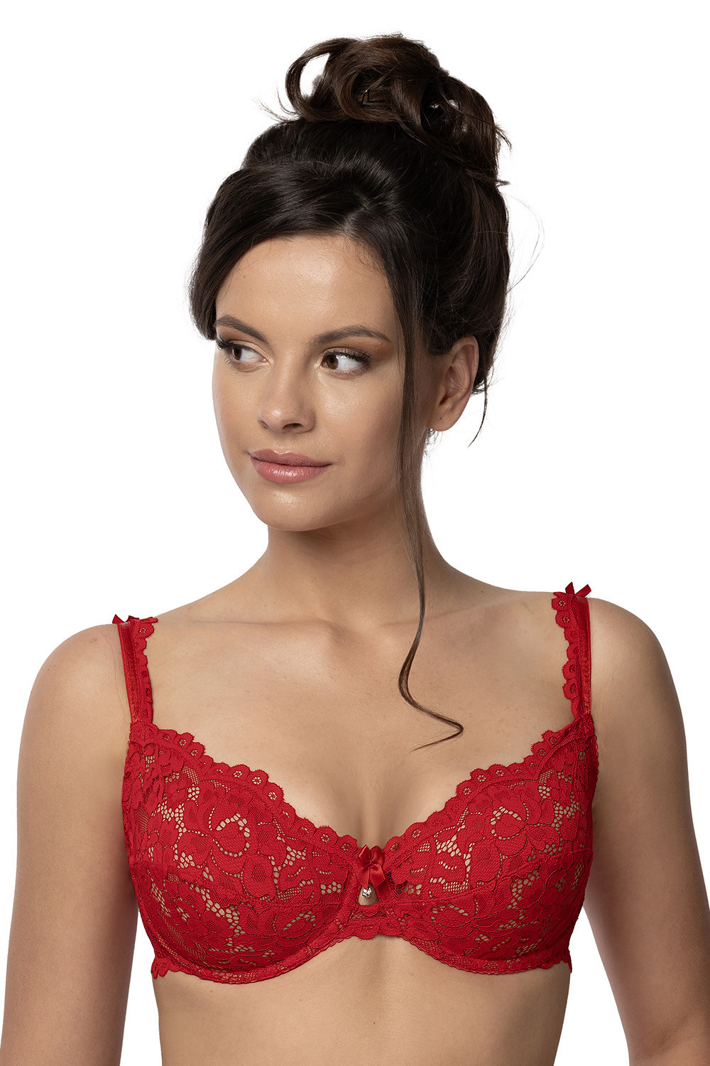 Podprsenka značky Róża, model Newia, s drátky, které podporují prsa a správně je tvarují. Výrobek má nastavitelná ramínka bez možnosti jejich odepnutí. Podprsenka se zapíná na háčky. Místo zapínání: na zádech. Výrobek je vyroben z 85 % polyamidu, 10 % elastanu, 5 % bavlny. Dámský výrobek.