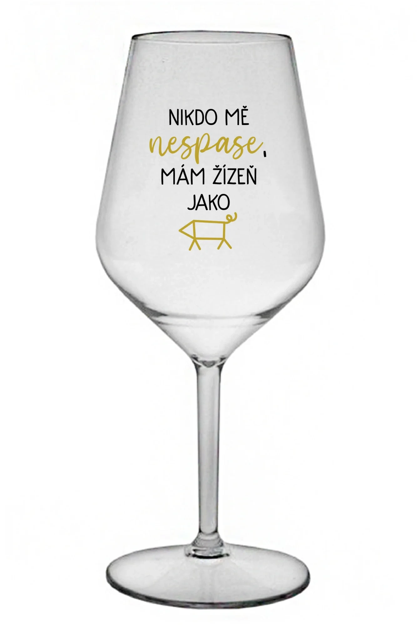NIKDO MĚ NESPASE, MÁM ŽÍZEŇ JAKO PRASE - čirá nerozbitná sklenice na víno 470 ml