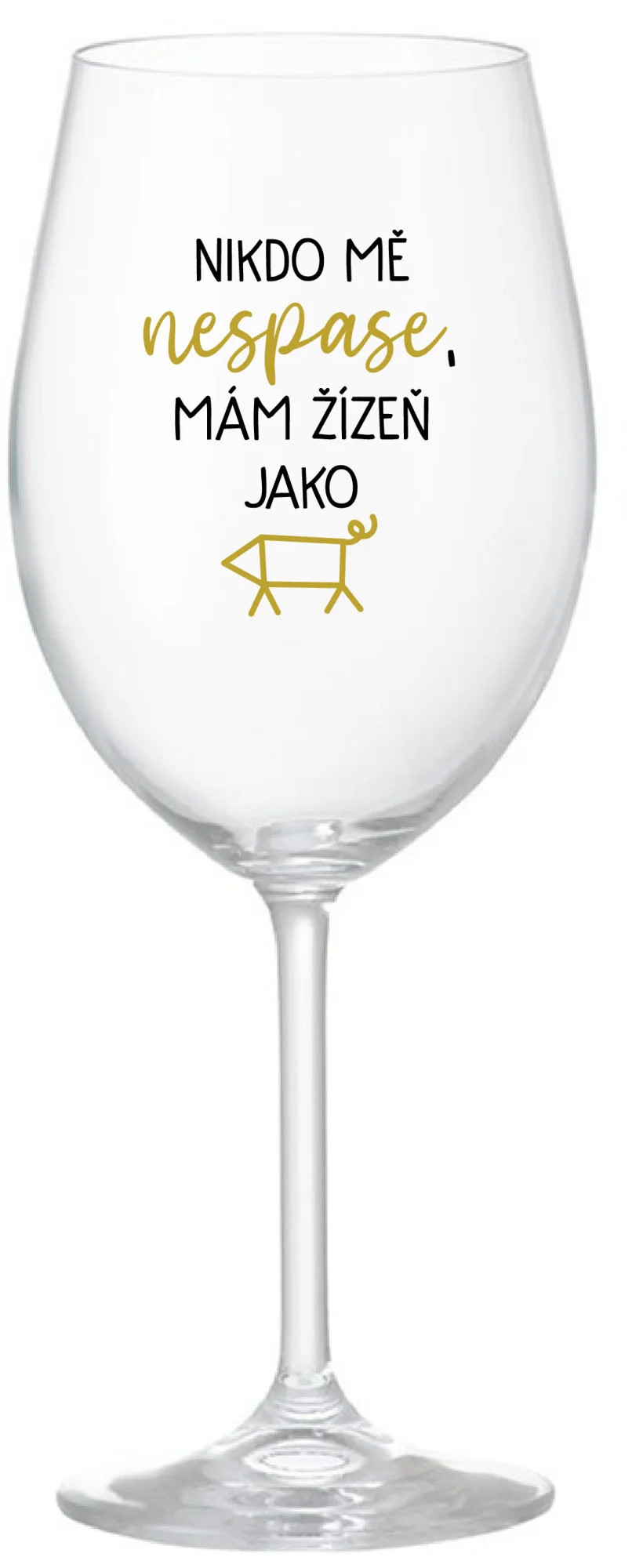 NIKDO MĚ NESPASE, MÁM ŽÍZEŇ JAKO PRASE - čirá sklenice na víno 350 ml