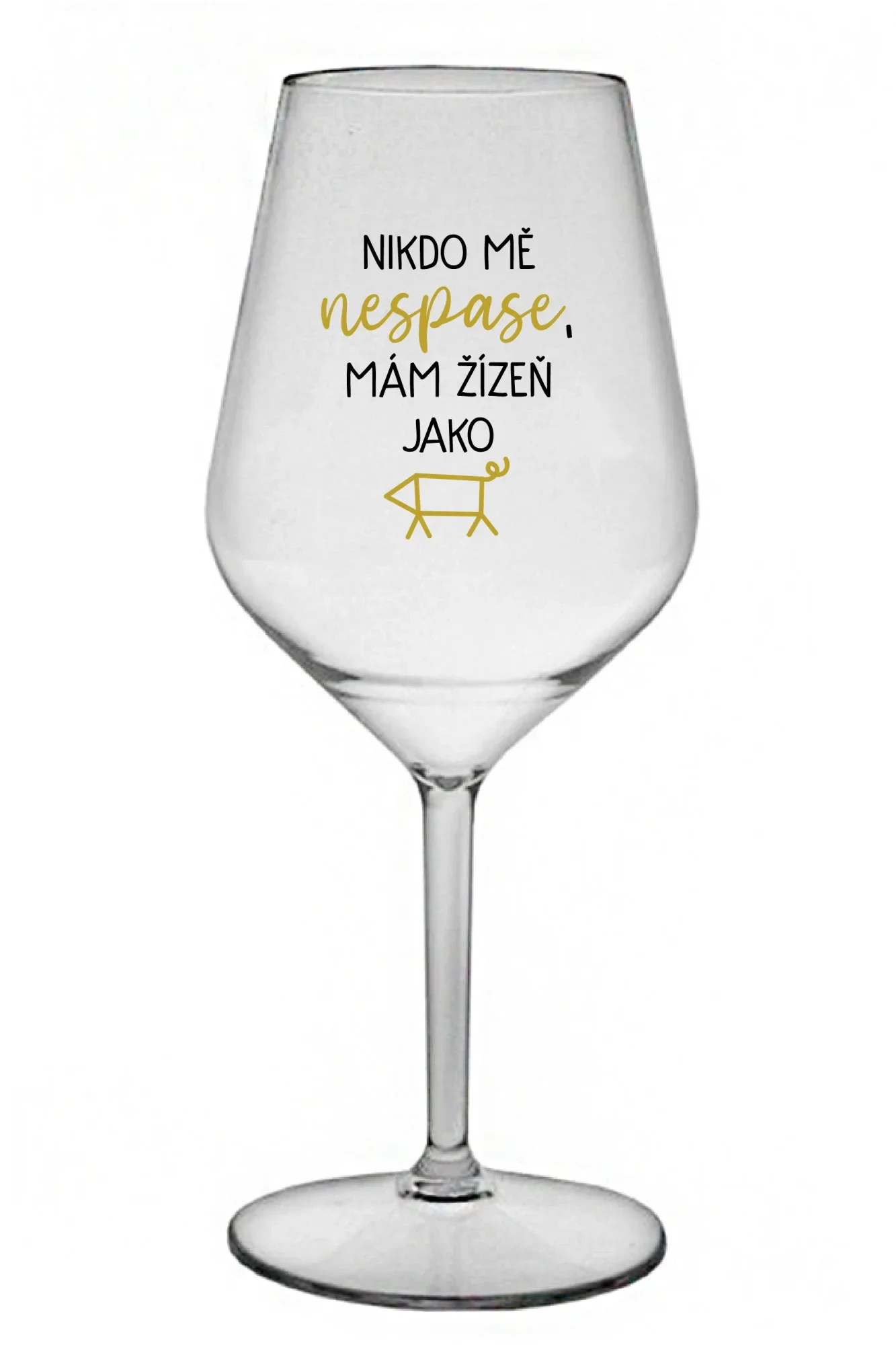 NIKDO MĚ NESPASE, MÁM ŽÍZEŇ JAKO PRASE - priehľadný nerozbitný pohár na víno 470 ml