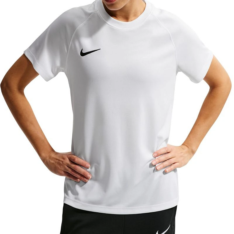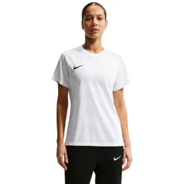 Dámské tričko Nike Dri-Fit Park VIII bílé HV8178 100. Dámské tričko Nike na fotbalové zápasy. regular fit. malé logo. rychleschnoucí tkanina. technologie Dri-FIT odvádí vlhkost. síťovina na zádech. materiál: 100% polyester.