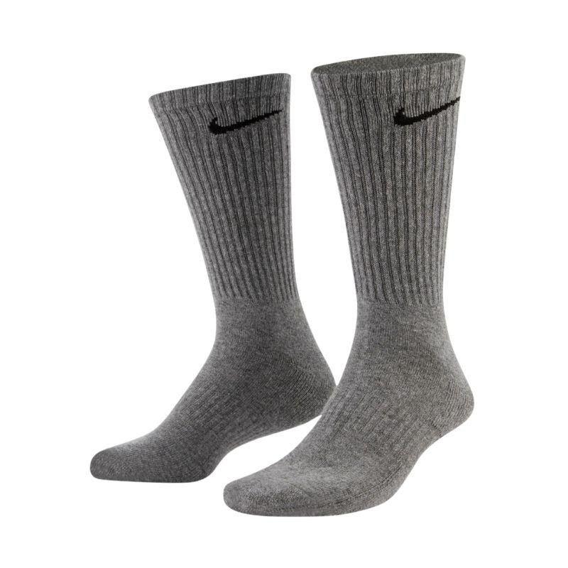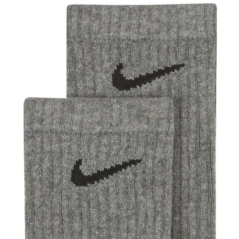Ponožky Nike Everyday Cush Crew 6 párů šedé SX7666 064. Tyto ponožky Nike v délce 1/3 lýtka vám pomohou udržet pohodlí při fyzické aktivitě. Ergonomický střih a použití odolných, pružných materiálů. Žebrování uprostřed chodidla poskytuje dodatečnou oporu. Měkká froté podšívka v nártu tlumí nárazy. Technologie Dri-Fit odvádí vlhkost. Cena za 6 párů. Materiál: 67 % bavlna, 30 % polyester, 2 % spandex, 1 % nylon.