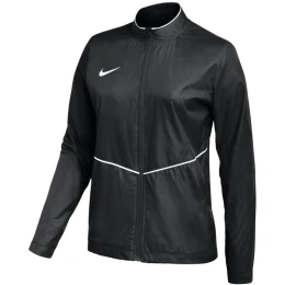 Dámská bunda Nike Park 26 Rain Black HM7267 010. Dámská bunda do deště Nike je ideální bundou do deště na trénink. Voděodolná tkanina poskytuje ochranu před lehkým deštěm. Standardní střih. Zip po celé délce. Stojatý límec. Postranní kapsy na zip. Potahy. Malé logo. Materiál: 100% recyklovaný polyester.