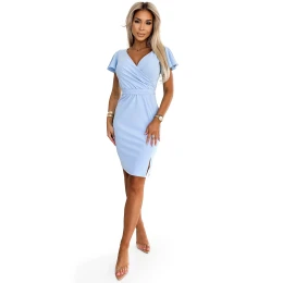 Nina - dámské šaty s přeloženým obálkovým výstřihem, krátkými rukávy, páskem a rozparkem na noze.