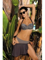 Smyslná, tmavá barva a krásný vzor jako vystřižený z přehlídek největších světových módních návrhářů, tyto plavky rozhodně vynikají nad ostatními. K dostání jsou výhradně v barvě moka s černou, v limitované edici. Perfektně sedí díky pečlivě tvarovaným, vyztuženým košíčkům s velkou push-up výplní (kterou lze vyjmout). Výrazně pozvedá prsa, přibližuje je k sobě a sexy je zvětšuje. Byla vytvořena tak, aby vám pomohla vypadat jednoduše módně a fenomenálně. Širší ramínka zavazovaná za krkem vytvářejí něco jako svůdný "americký výstřih", který krásně zvýrazňuje linii těla. Podprsenka má vzadu zapínání na přezku. Kalhotky se pohodlně zavazují na obou stranách boků, takže si jistě najdete to pravé pro vás. Italský materiál. polský výrobce.