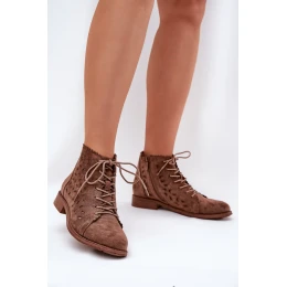 Dámské botky z eko semiše jsou stylovým návrhem na chladnější dny. Nízký svršek zdobený průhledným vzorem jim dodává lehkost. Šněrování a zip umožňují snadné obouvání a přizpůsobení noze. Tyto botky budou vynikající volbou pro každodenní stylizace, kombinující funkčnost s módním vzhledem. Při výběru velikosti se řiďte tabulkou velikostí.