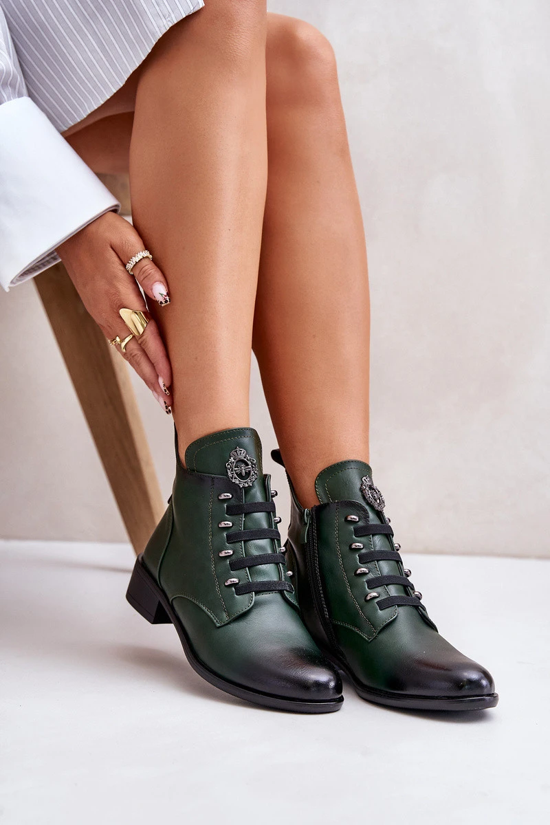 Nízké boty zateplené na zip s ozdobou zelené Nevalia