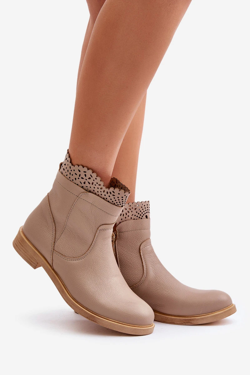 Nízké Dámské Boty Na Ploché Podpatky Kožené Lewski model 21672560 Béžové - Boto