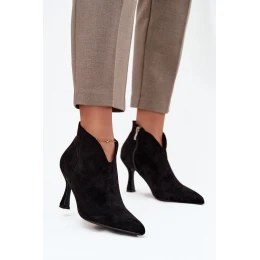 Nízké dámské kotníkové boty na jehlovém podpatku semiš černé model 21709922 - Boto