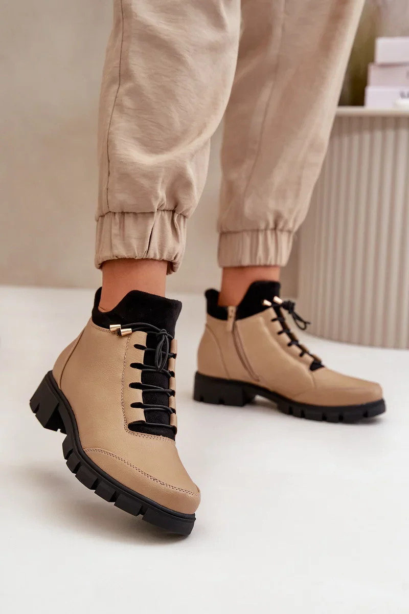Nízké Dámské Kotníkové Boty Zateplené Z Eko Kůže Béžové model 20505066 - Kesi