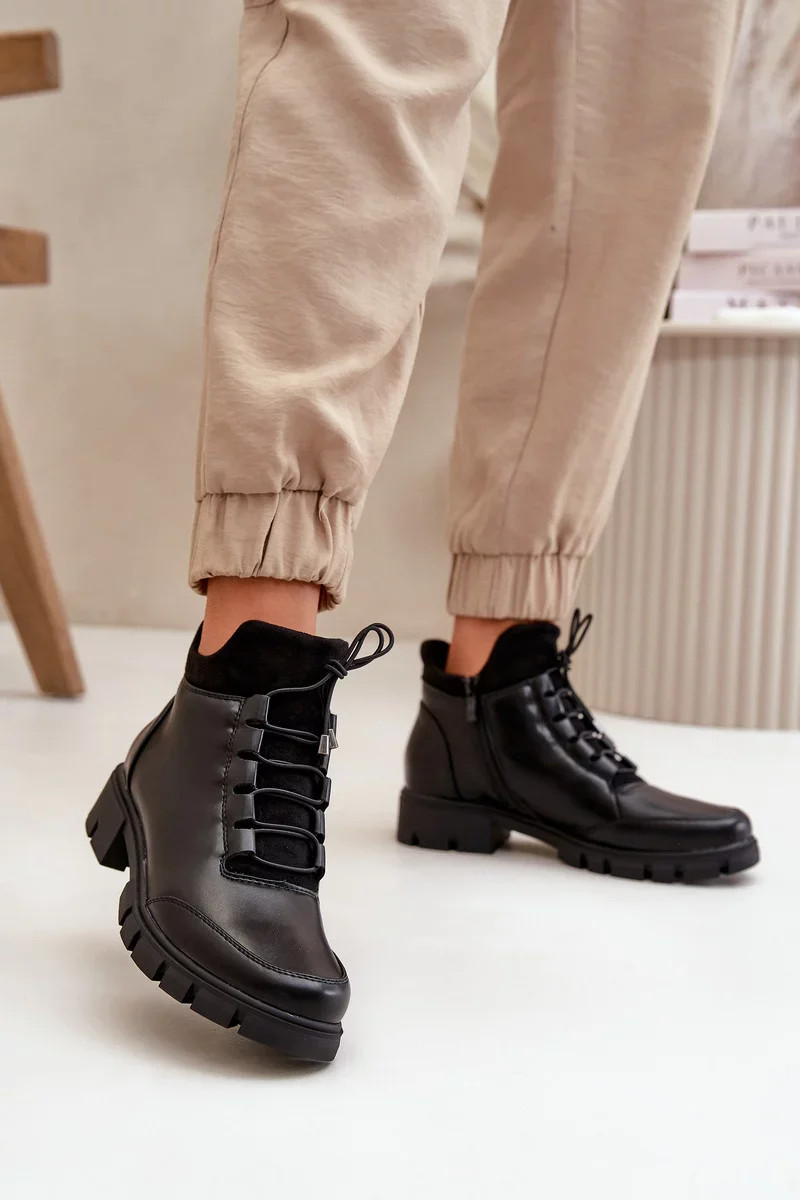 Nízké dámské kotníkové boty zateplené z eko kůže černé Erisabelle