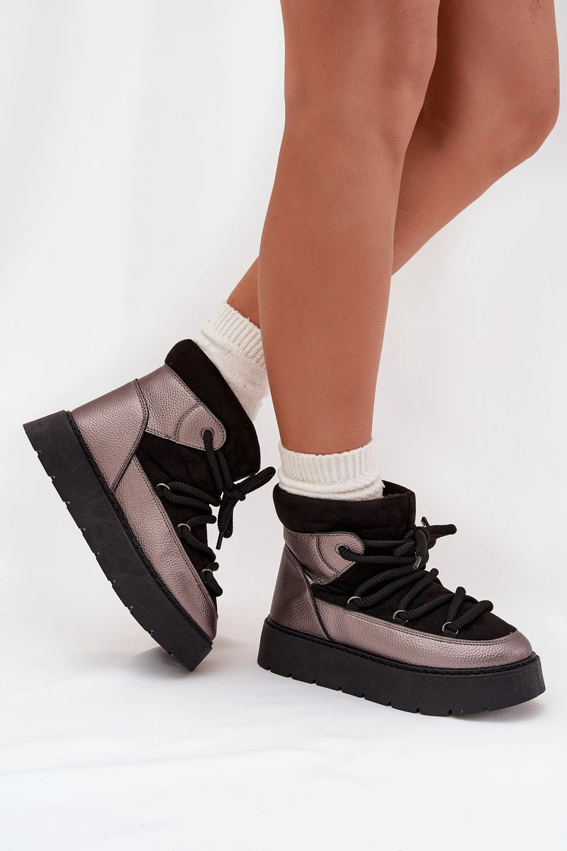 Dámské nízké sněhule vyrobené z kombinace ekologické semišové a ekologické kožené kůže jsou skvělou volbou na zimní dny. Umístěné na platformě, poskytují pohodlí a stabilitu, a silné šněrování vpředu dodává charakter. Uvnitř zateplené silným kožíškem zaručuje teplo i v nejmrazivějších dnech. Ideální na zimní výlety, procházky nebo každodenní stylizace, tyto sněhule spojují funkčnost s módním vzhledem. Při výběru velikosti prosím doporučujeme řídit se tabulkou velikostí. Při výběru velikosti se řiďte tabulkou velikostí.