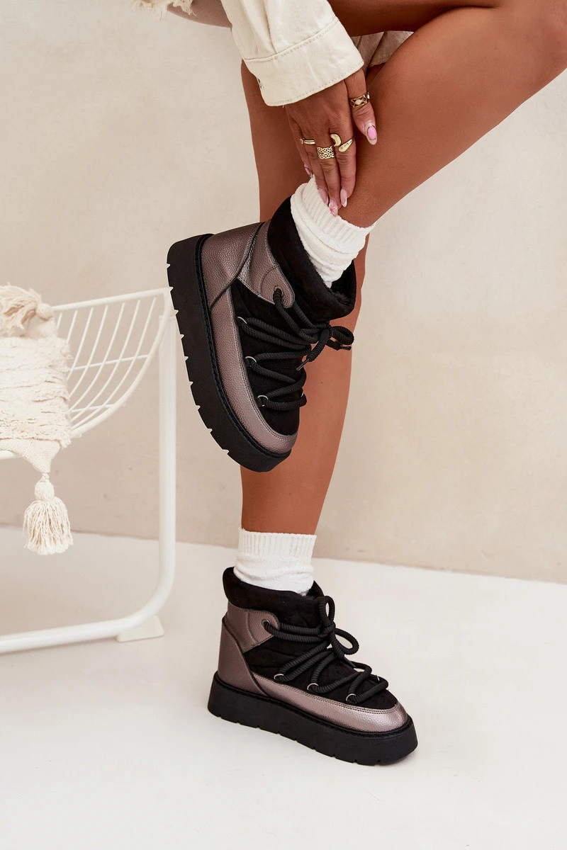 Nízké dámské sněhule s hřejivým kožíškem a silným šněrováním černé Xarina