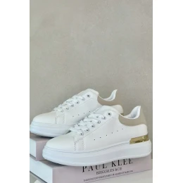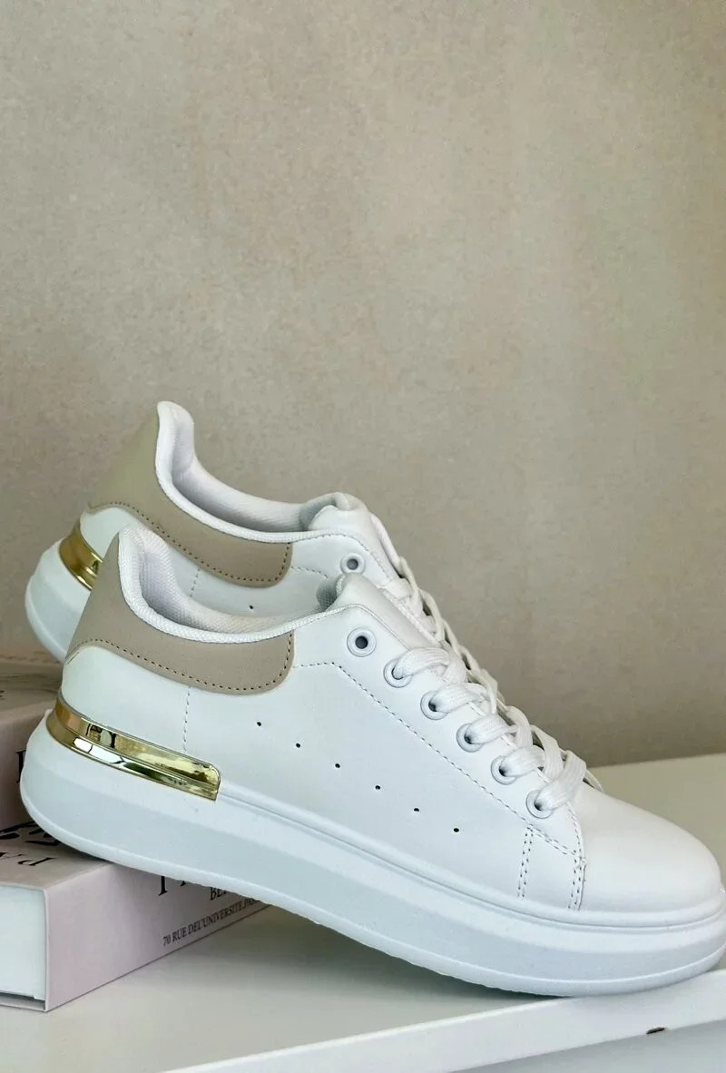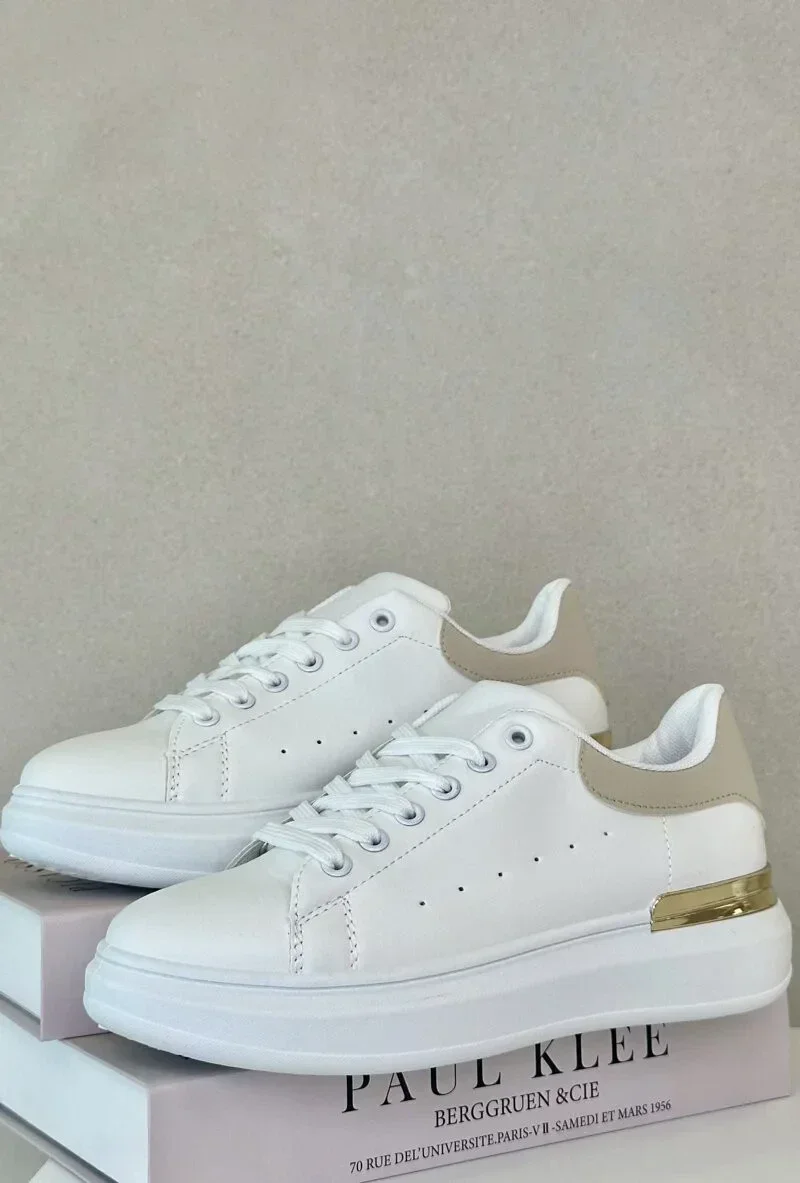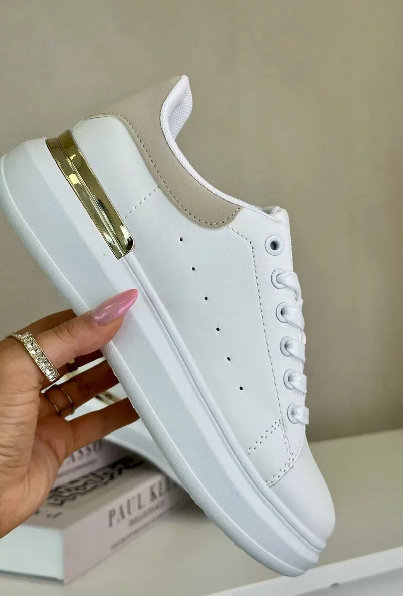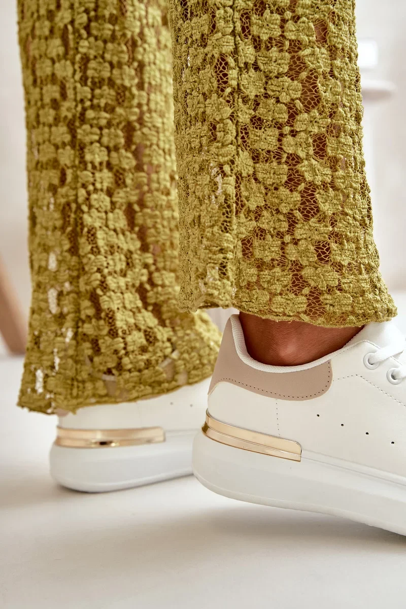 Nízké Dámské Tenisky Na Platformě Z Eko Kůže Bílo-Béžové Nevelena