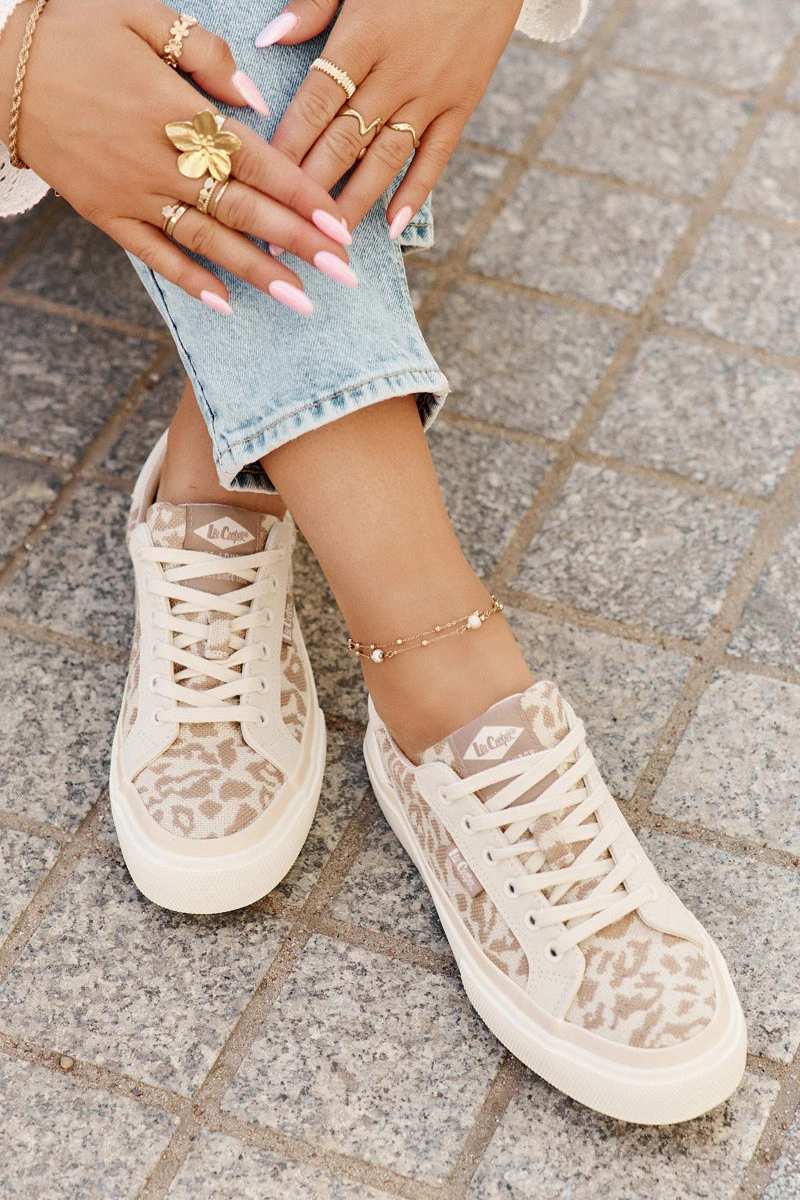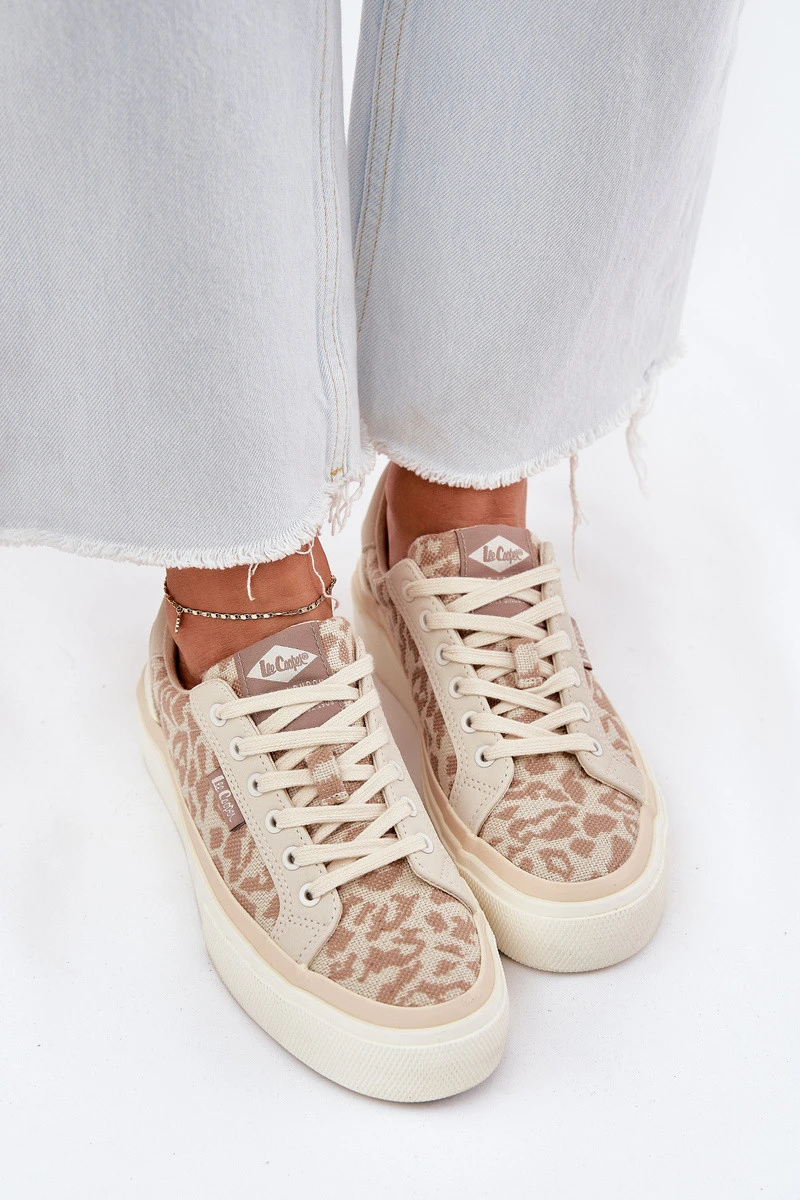 Nízké dámské tenisky s leopardím potiskem Lee Cooper LCW-25-02-3330L béžové
