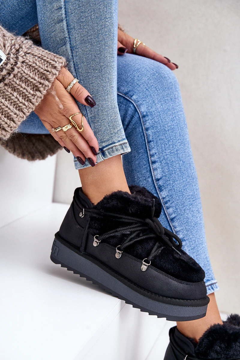 Nízké Sněhové Boty Na Platformě S Kožíškem D.Franklin Černé DFSH370011