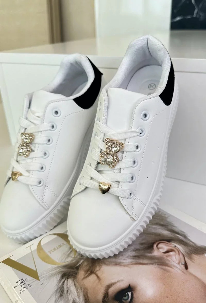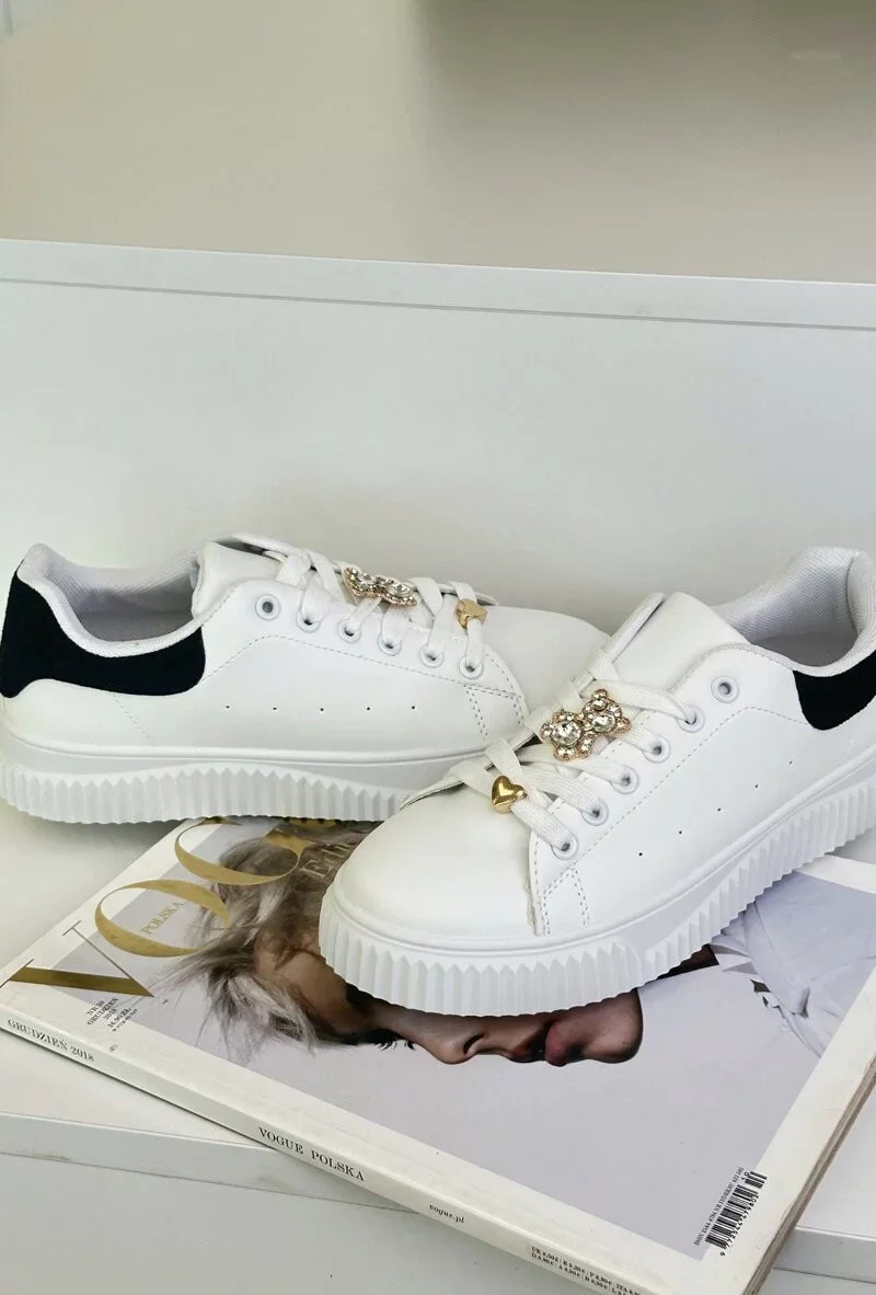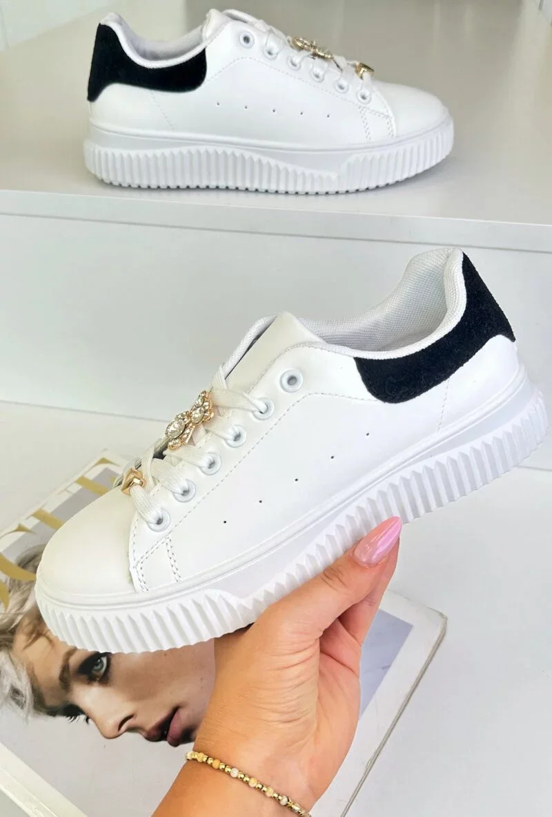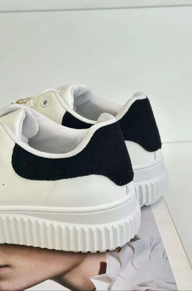 Osazené na platformě, tyto tenisky vynikají roztomilými připínáčky na tkaničkách, které jim dodávají výjimečné kouzlo. To ideální obuv pro každodenní stylizace, která spojuje módní vzhled s pohodlím nošení. Při výběru velikosti se prosím řiďte tabulkou velikostí.
